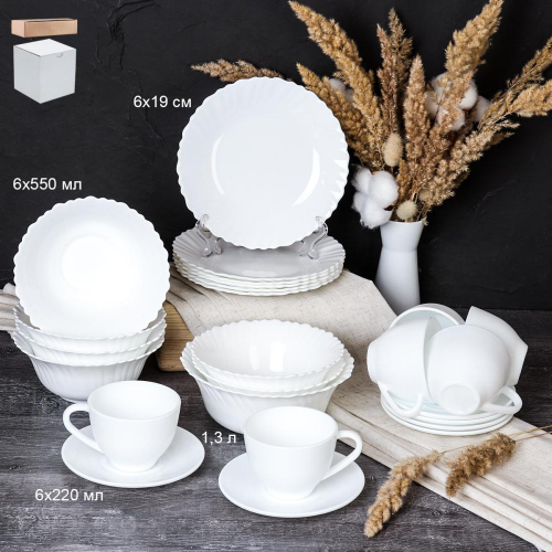 Столовый набор 25 предметов Классика с чайным набором 13 7578 GRAY-GB220 (WHITE) (уп 2)