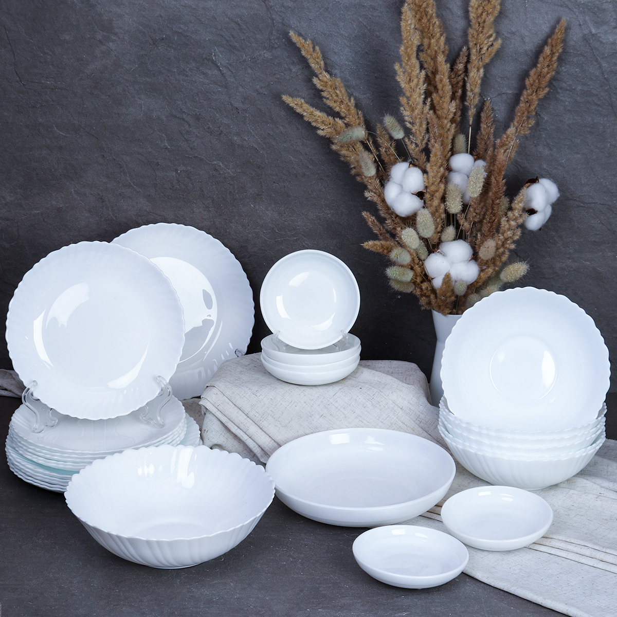 Столовый сервиз из стеклокерамики  по своему составу и технологии производства гораздо ближе к стеклу, чем к фарфору  (это стекло с добавками, которые делают её непрозрачной). Столовый набор на 6 персон и на 12 персон из стеклокерамики визуально похож на фарфор и обладает хорошей устойчивостью к механическим повреждениям. Посуда отлично выглядит при сервировки любого стола и отзывы от покупателей на такие столовые наборы только положительные. Узнать цену и купить столовые сервизы Посуду оптом и в розницу Вы можете в нашем интернет магазине в Челябинске. А также в другиих городах, таких как Оренбург Уфа Курган Омск Тюмень Екатеринбург Самара Пенза Никольск Гусь Хрустальный и других. Доставка во многие города России бесплатная
