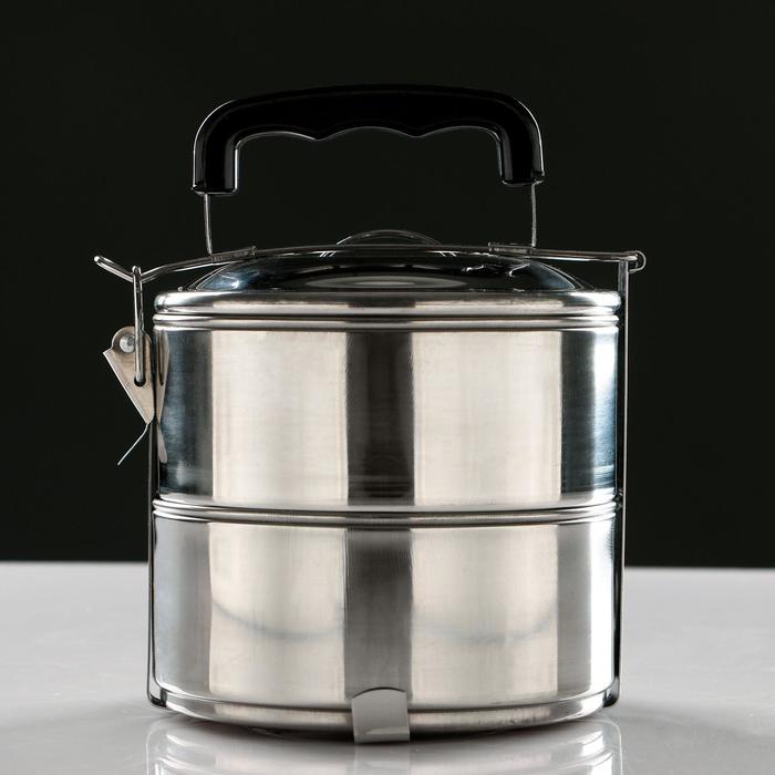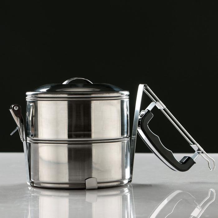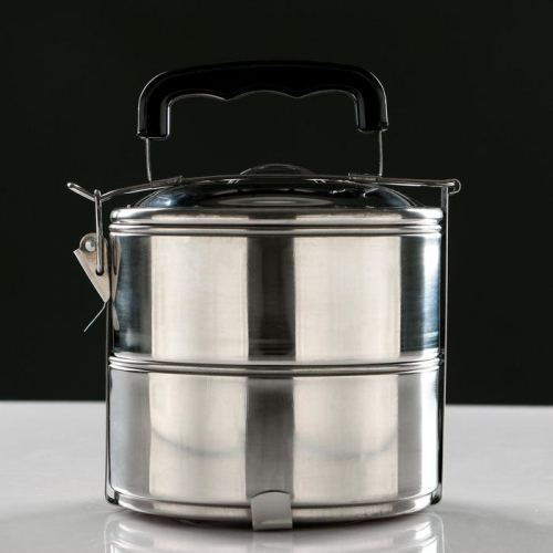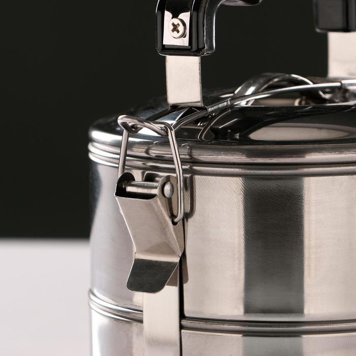 Берите обед с собой! Ланч-бокс на 1,4 л — круглый металлический контейнер с герметичной крышкой и внутренними перегородками для раздельного хранения блюд. Объём подходит на полноценный приём пищи, а ручка на корпусе упрощает переноску в сумке или рюкзаке.