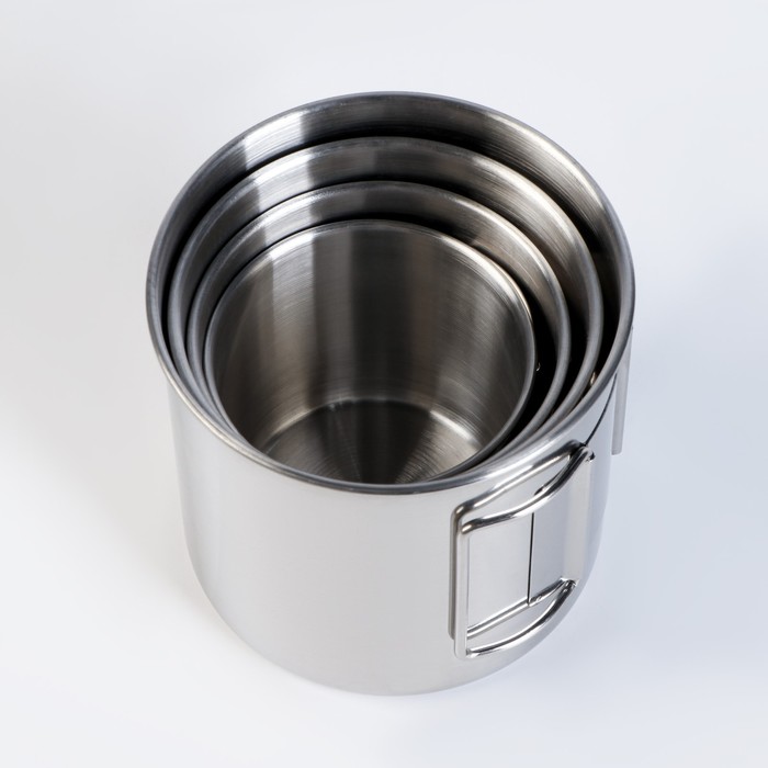 * Кружки складываются друг в друга, как матрешка, что позволяет экономить место в рюкзаке
