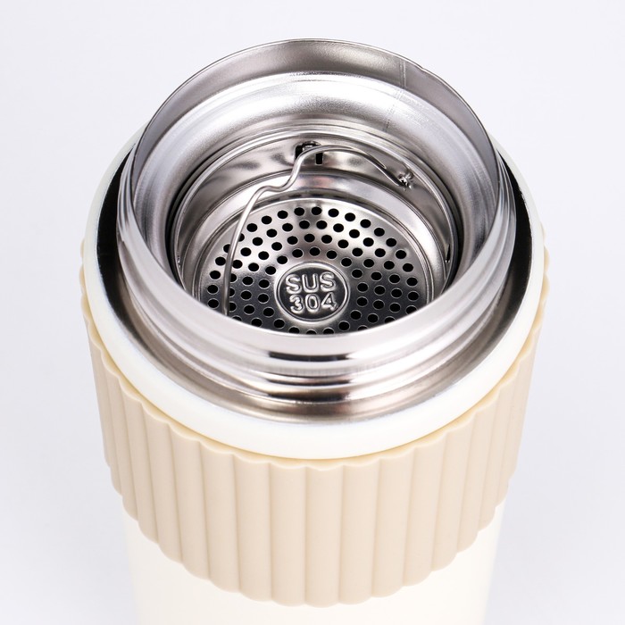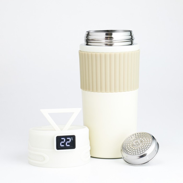 Термокружка TAKE IT EASY New design, 400 мл, сохраняет тепло 12 ч, термометр, сито, бежевый