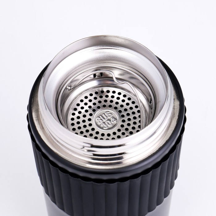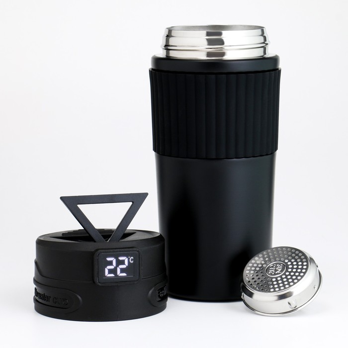 Термокружка TAKE IT EASY New design, 400 мл, сохраняет тепло 12 ч, термометр, сито, чёрная