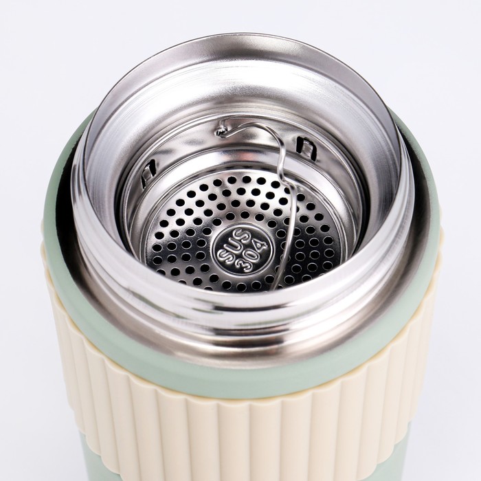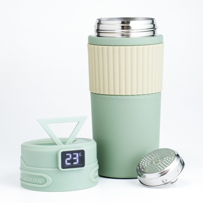 Термокружка TAKE IT EASY New design, 400 мл, сохраняет тепло 12 ч, термометр, сито, нержавеющая сталь, зелёный