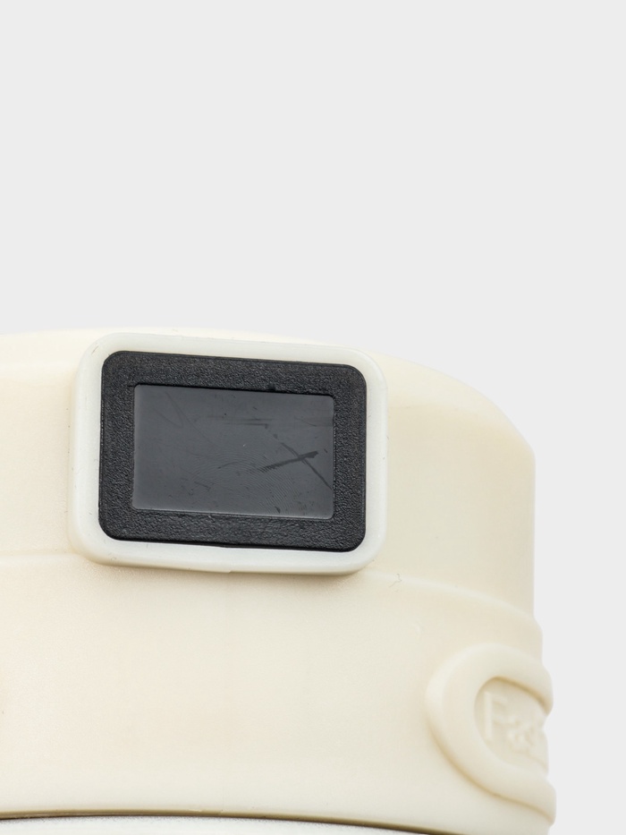Кружка оснащена удобной крышкой, которая плотно закрывается, предотвращая проливание напитка даже во время активного движения. Материал кружки устойчив к появлению царапин и прост в уходе, что делает использование изделия еще более приятным и долговечным. Встроенный высокочувствительный датчик показывает актуальную температуру одним нажатием на экран. Перед проверкой рекомендуется перевернуть термокружку. Долговечные элементы питания для дисплея уже встроены в термос, что обеспечивает его продолжительную работу без необходимости замены батареек.
