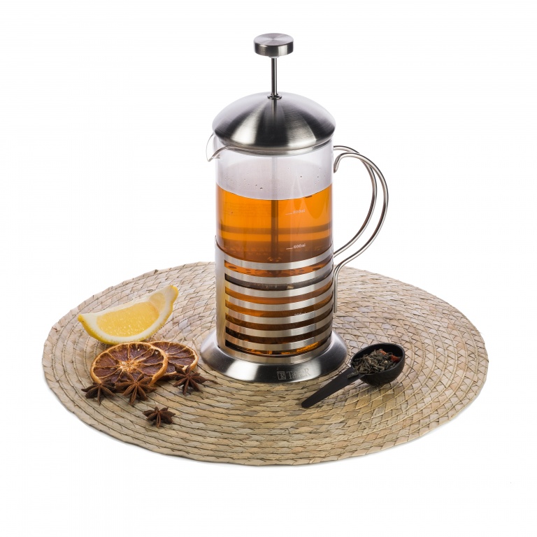 Колба выполнена из боросиликатного стекла, устойчивого к перепадам температур. Корпус выполнен из высококачественной нержавеющей стали 18/10 (AISI 304), крышка - из нержавеющей стали и безопасного пластика (PP). Пресс выполнен из высококачественной нержавеющей стали. Толщина колбы - 2 мм, толщина корпуса - 0,8 мм, толщина пресс-фильтра - 0,3 мм.