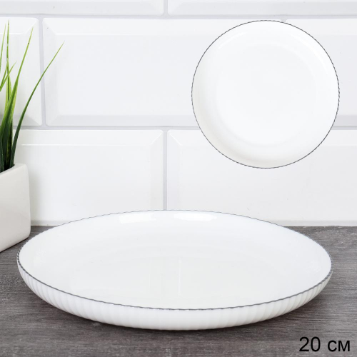 Тарелка 21,5 см белая рифленая / KU-505 /уп 31/