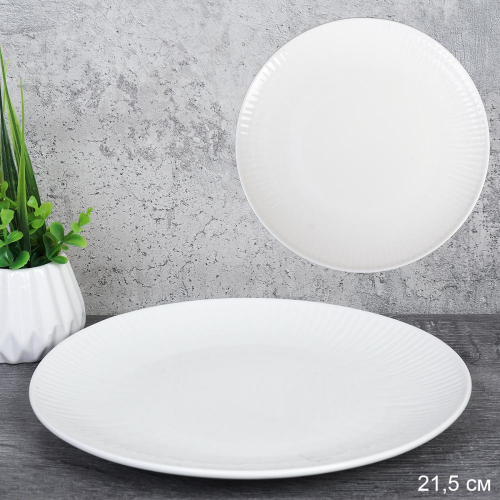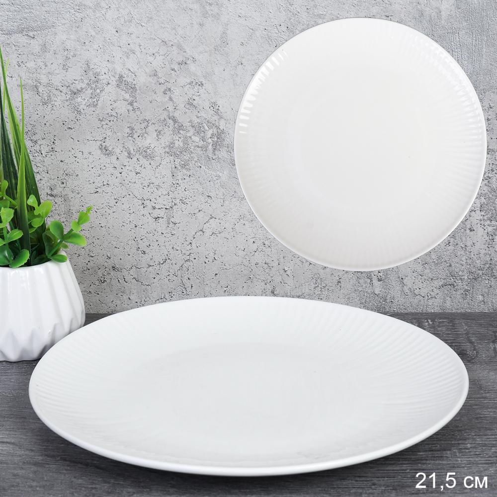 Тарелка 21,5 см белая рифленая / KU-505 /уп 31/