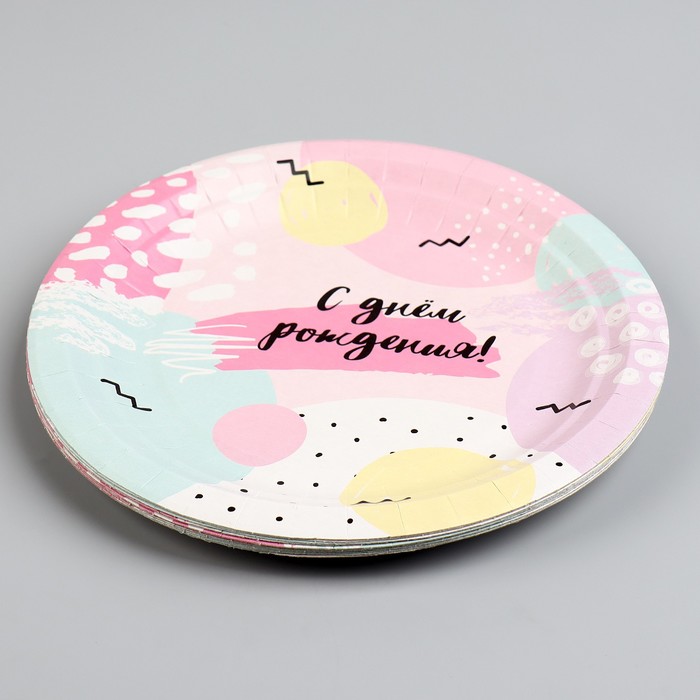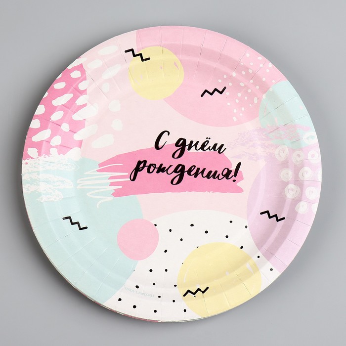 Тарелка одноразовая бумажная «С Днём Рождения», 18 см