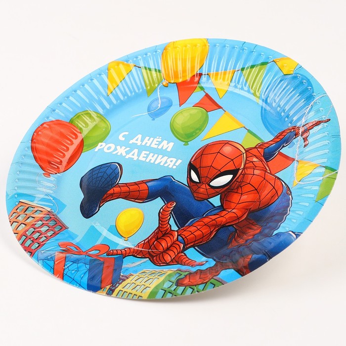 Тарелка бумажная одноразовая «С Днем Рождения!», 18 см, Человек-паук