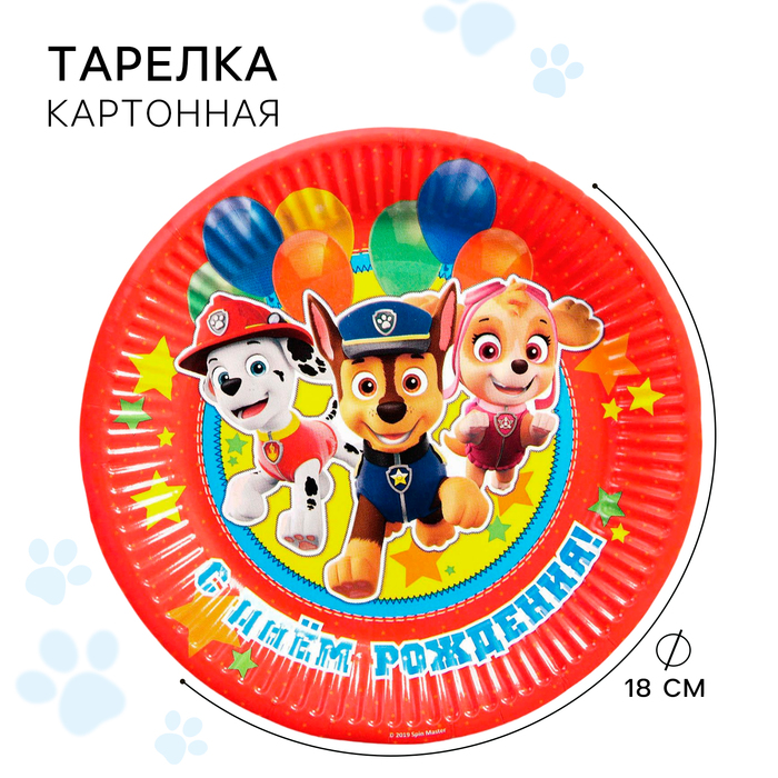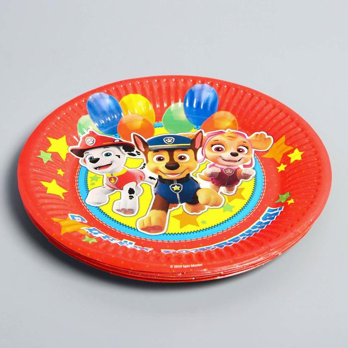Тарелка одноразовая бумажная «С Днем Рождения!», 18 см, Щенячий патруль