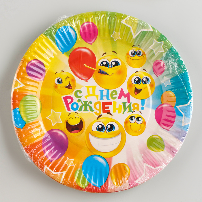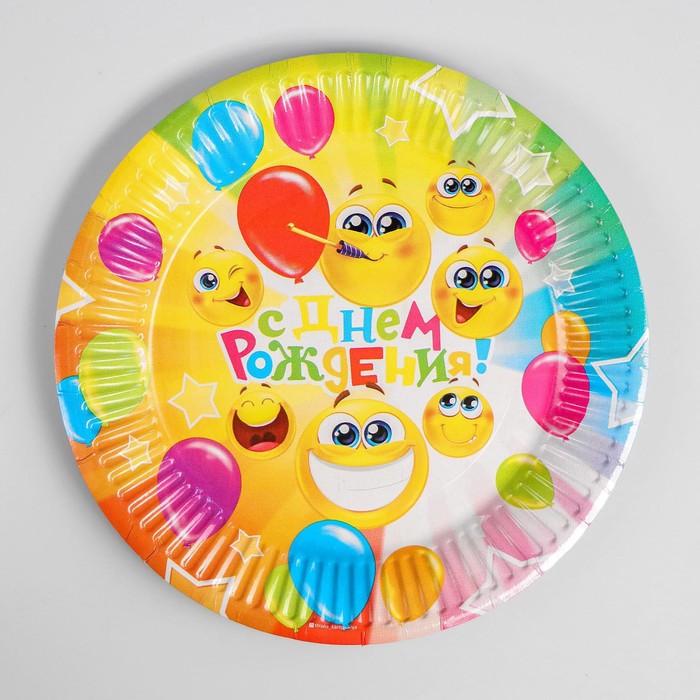 Тарелка одноразовая бумажная «С днём рождения!» веселые смайлы, 18 см