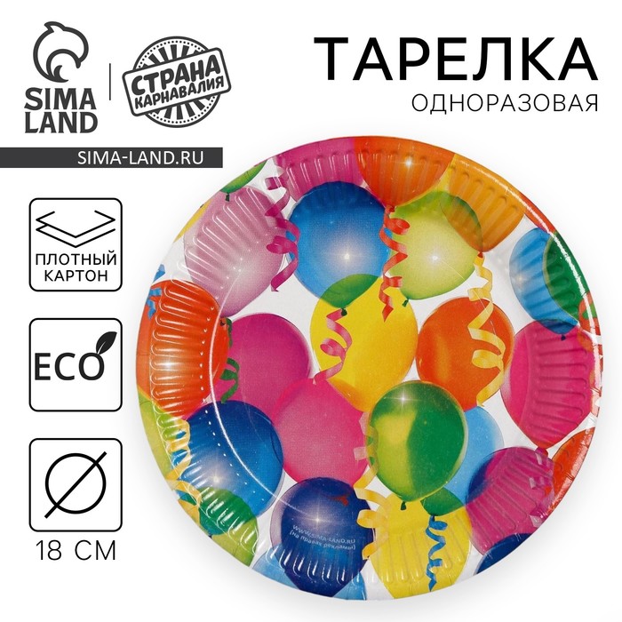 Тарелка одноразовая бумажная «Воздушные шарики» 18 см