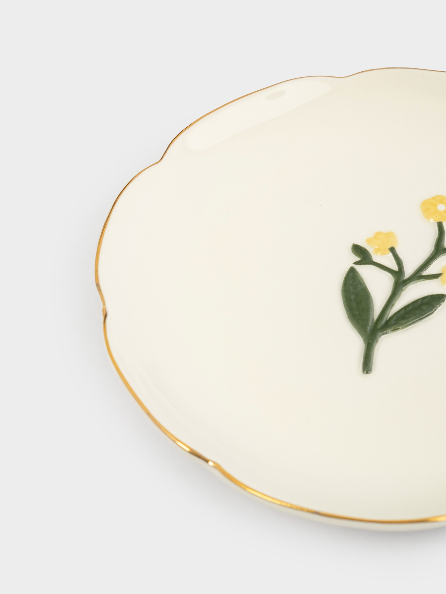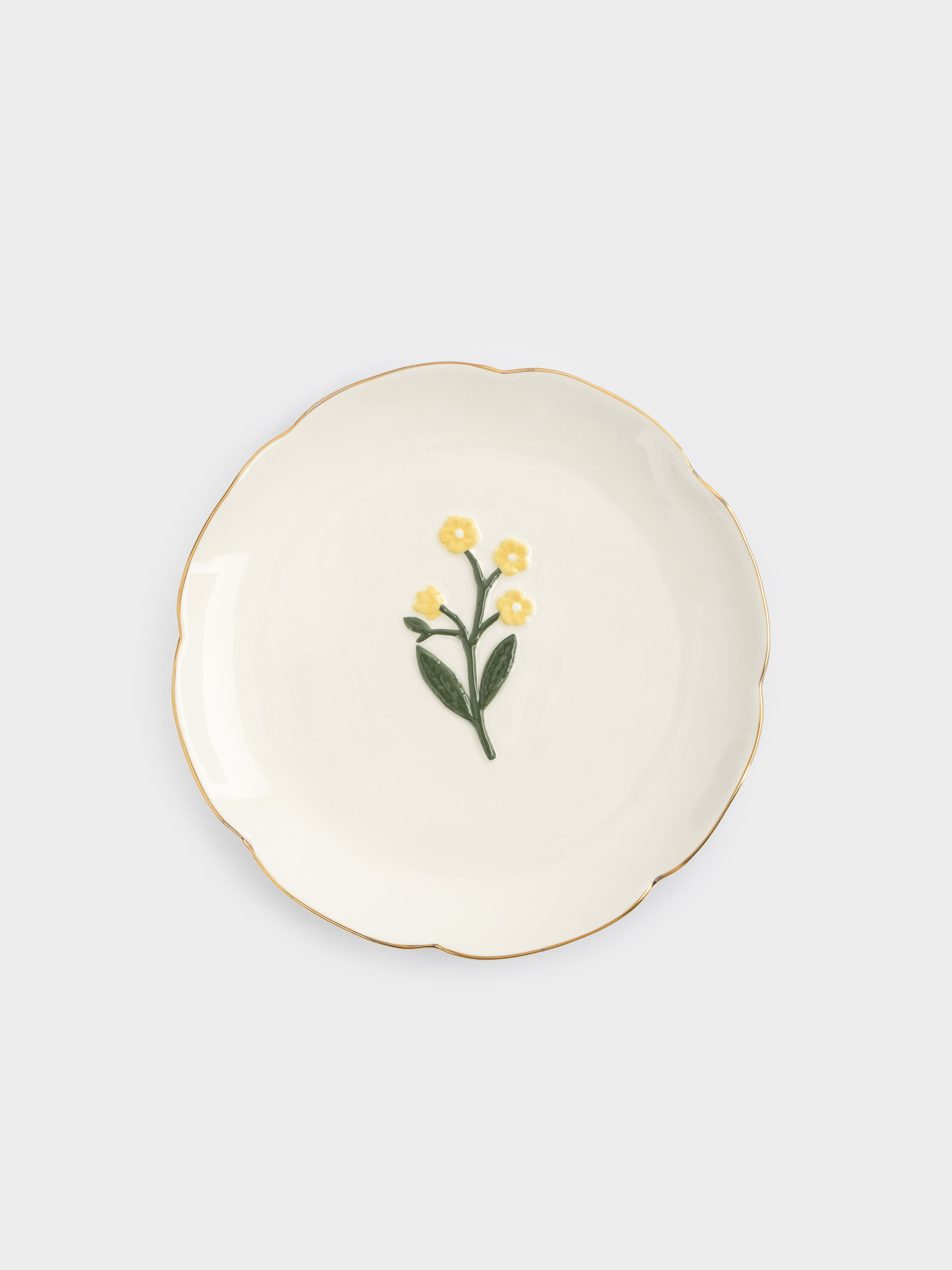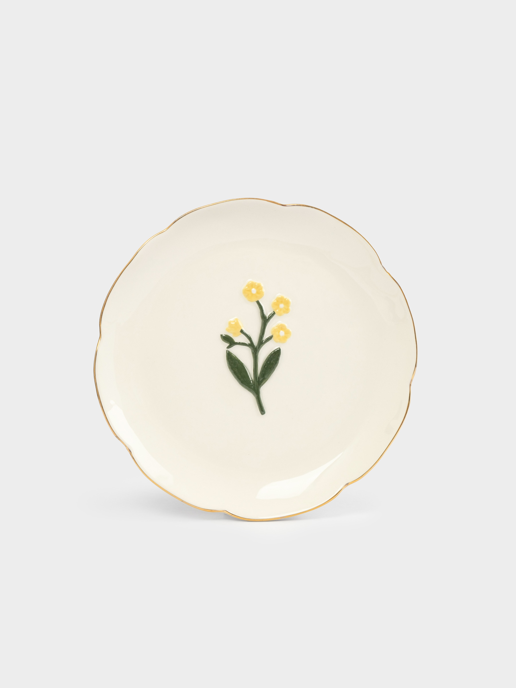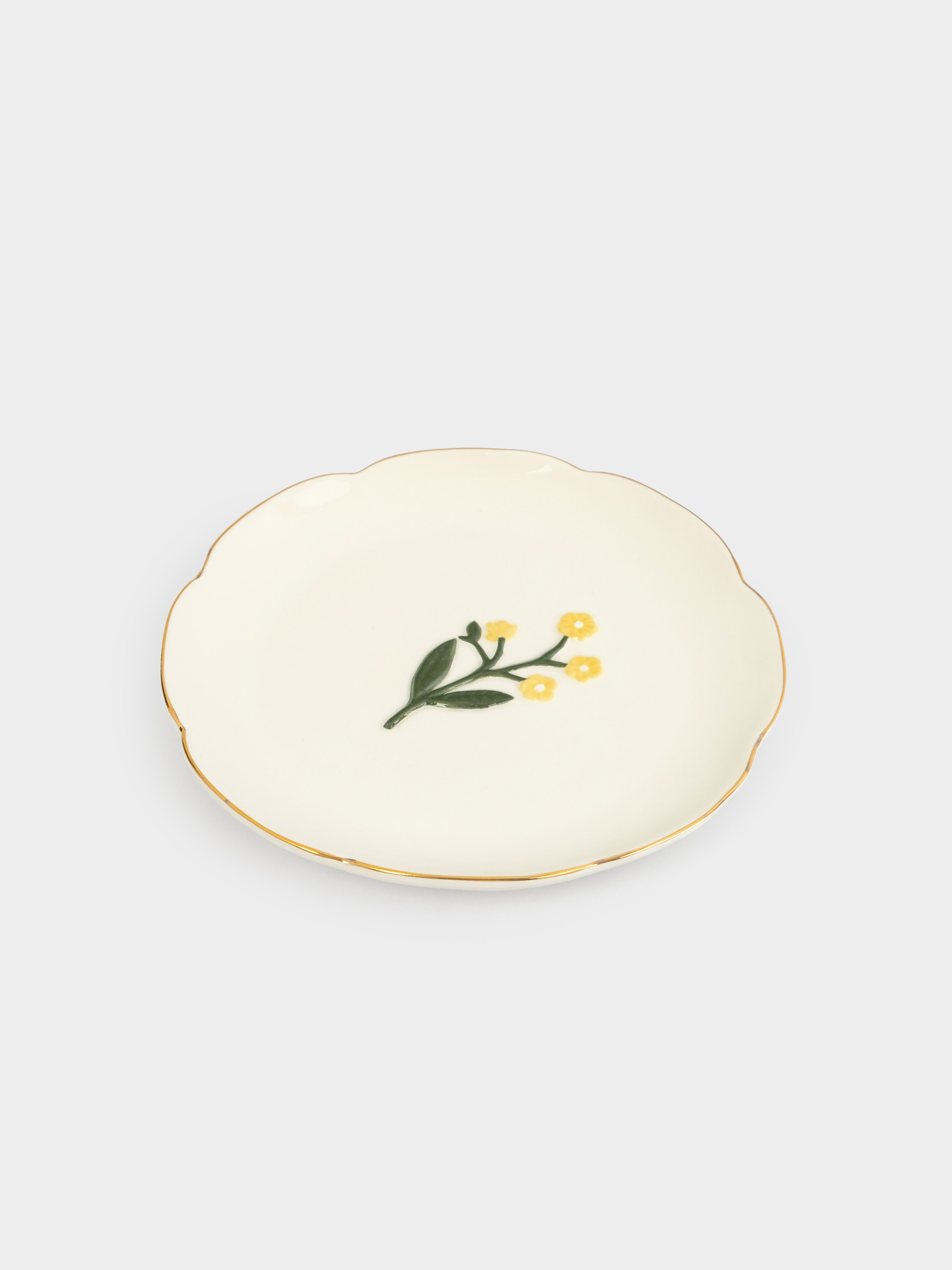 Тарелка десертная, 17 см, керамика, молочная, с золотистым кантом, Желтые цветы, Gentle flower