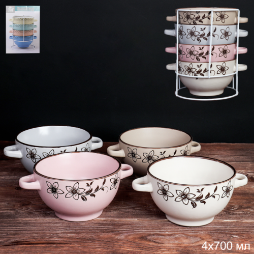 Тарелка глубокая суповая 4 штуки на подставке / 44126 /уп 6/ 713459