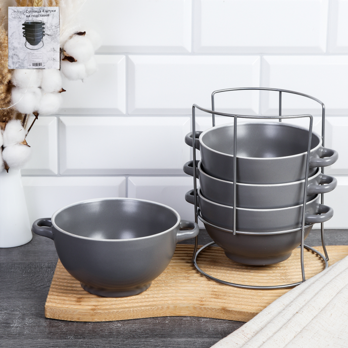 Тарелка глубокая суповая 4 штуки на подставке / BLS4/1900 /уп 6/ 743561