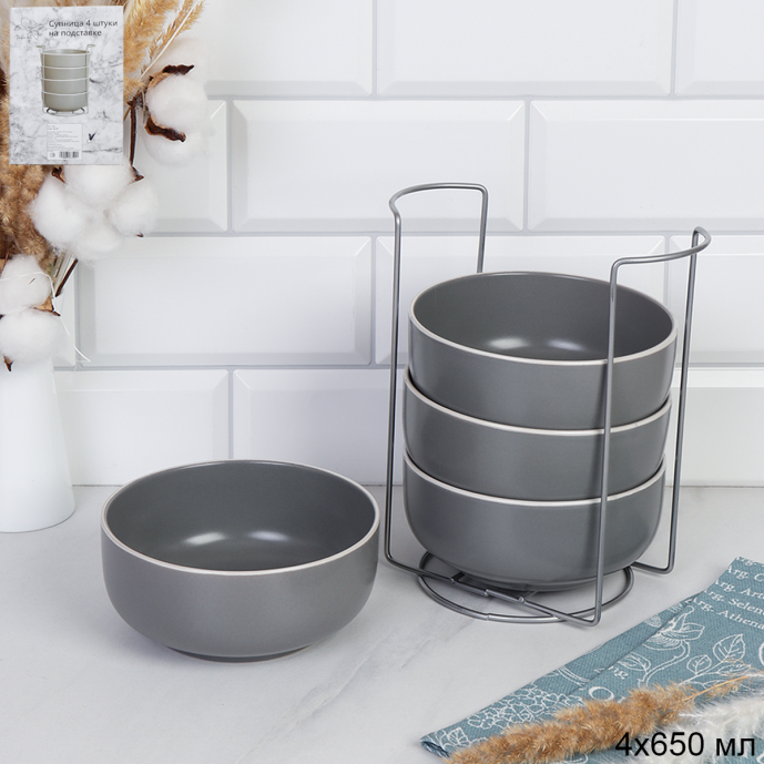 Тарелка глубокая суповая 4 штуки на подставке / BS4/1900 /уп 6/ 743557 ДОП СКИДКА НА КОРОБ 3%
