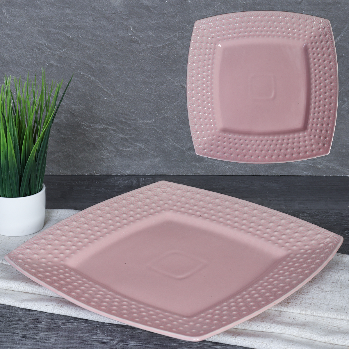 Тарелка квадратная 25 см Пыльная роза / 703390 /уп 20/ 711846