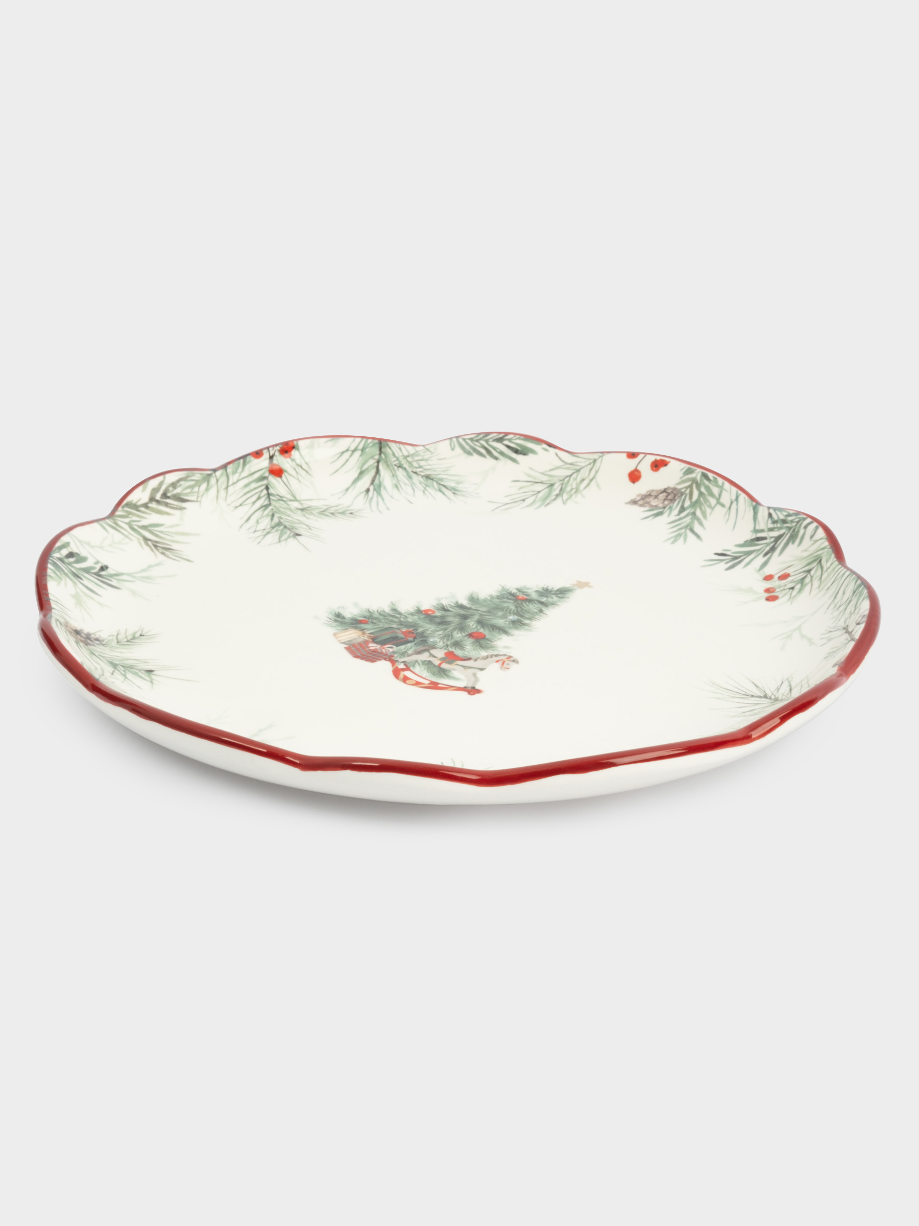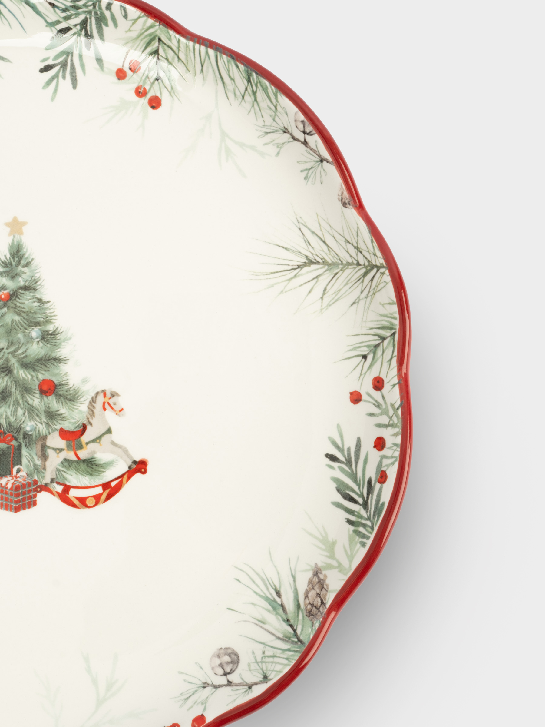 Тарелка обеденная, 24 см, керамика, красная, Лошадка у елки, Festival