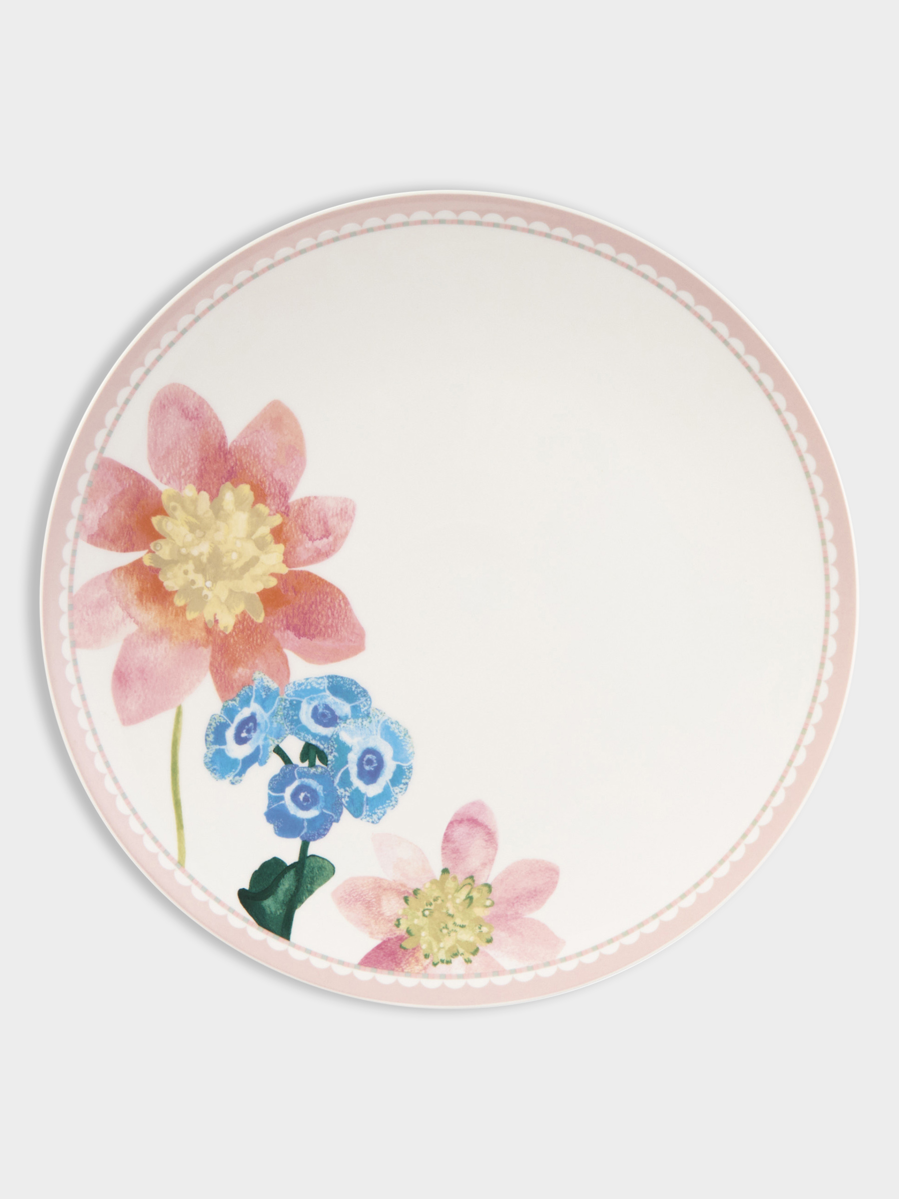 Тарелка обеденная, 27 см, фарфор P, белая, с розовым кантом, Примула, Primula. Материал: фарфор Рorcelain. Мыть тёплой водой с применением жидких моющих средств и в посудомоечной машине. Можно использовать в СВЧ.