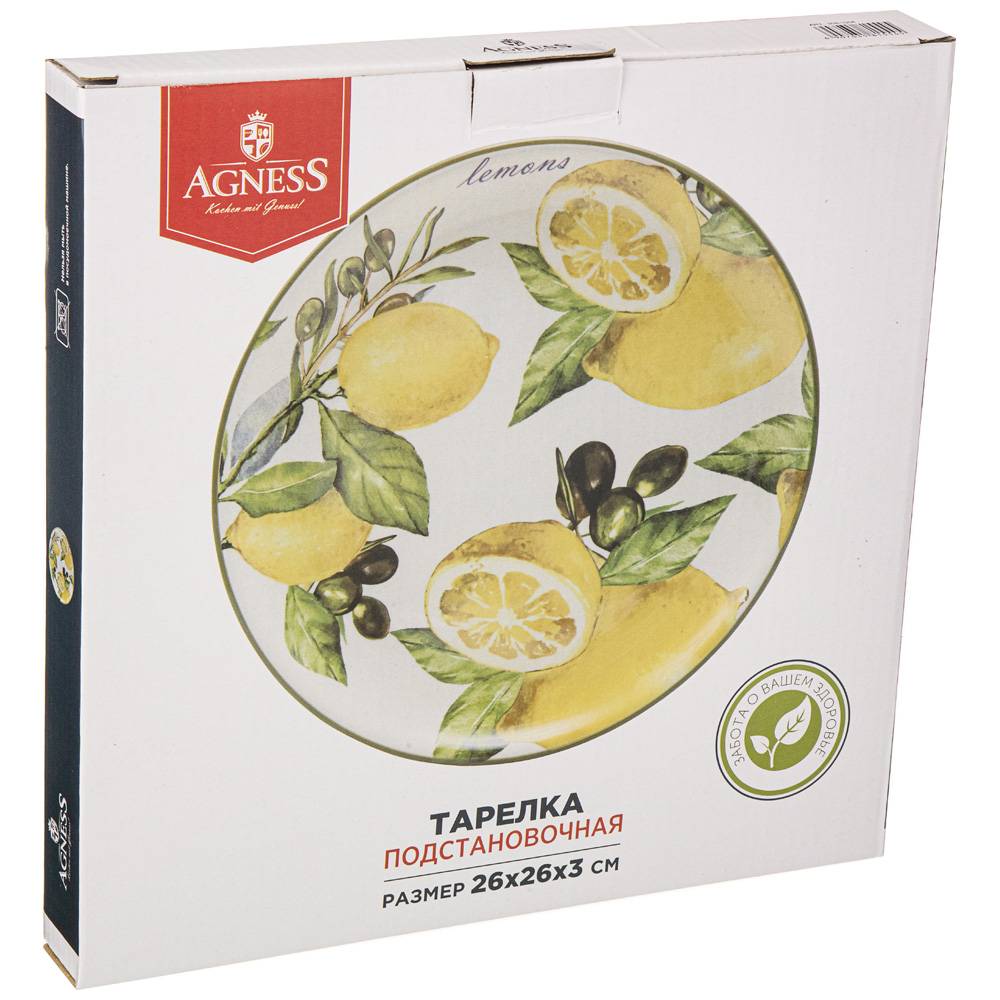 ТАРЕЛКА ОБЕДЕННАЯ AGNESS "ЛЕМОН ТРИ" 26*3 СМ (КОР=16ШТ.)