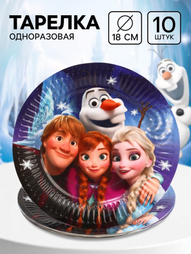 Тарелка одноразовая бумажная 18 см, набор 10 шт., Холодное сердце