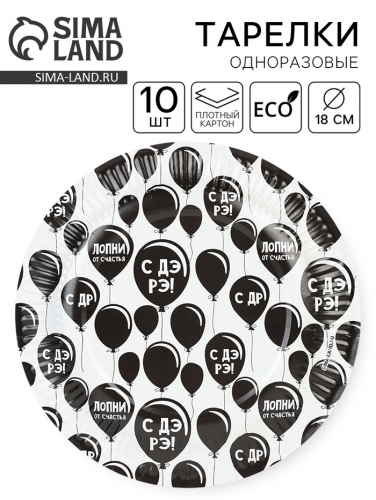 Тарелка одноразовая бумажная «С ДР», 18 см, 10 шт.