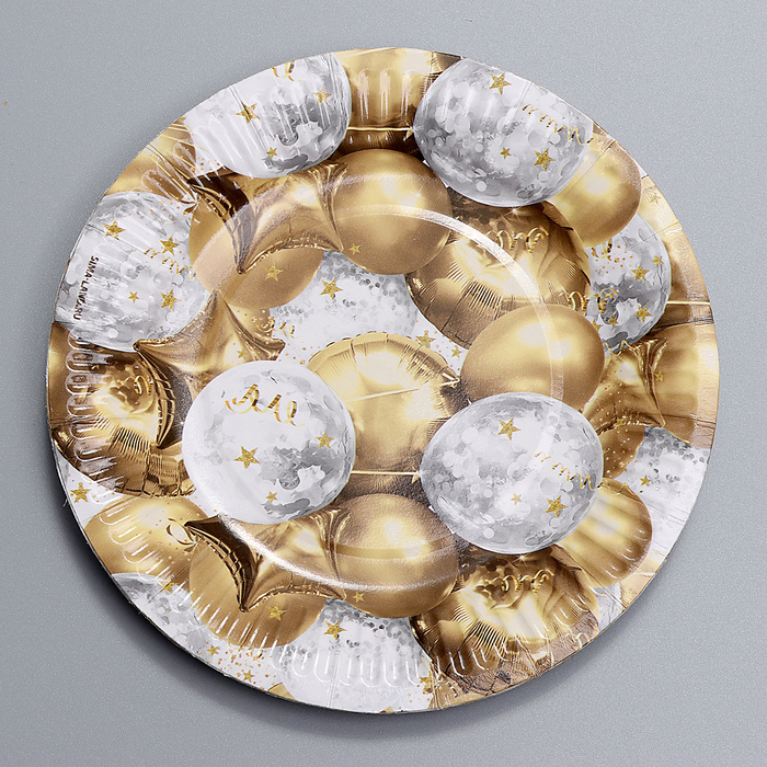Тарелка одноразовая бумажная «Золотые шары», 18 см