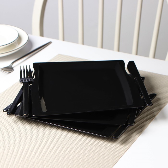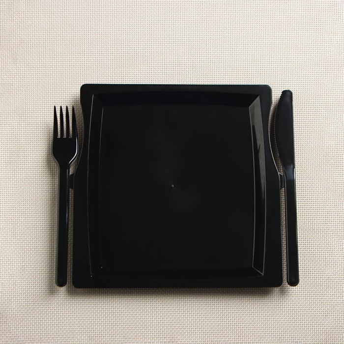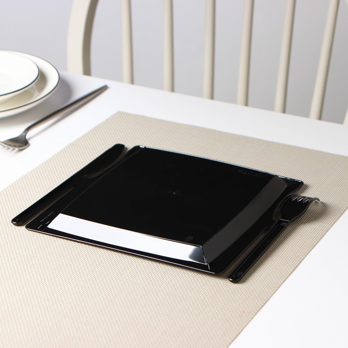 Тарелка пластиковая одноразовая 3 в 1, квадратная, чёрная