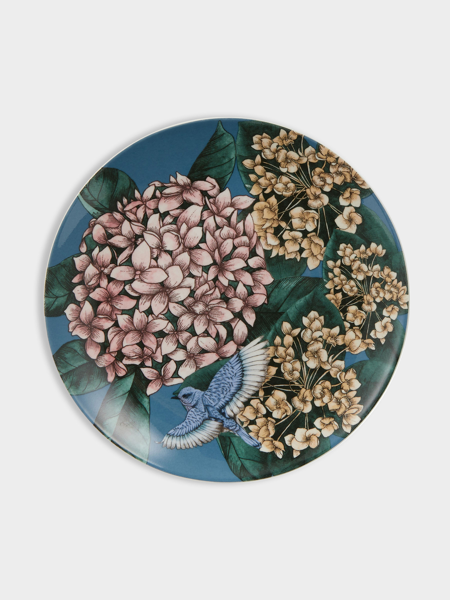 Тарелка десертная, 19 см, фарфор P, синяя, Гортензия и птица, Reminisce. Материал: фарфор Рorcelain. Мыть тёплой водой с применением жидких моющих средств и в посудомоечной машине. Можно использовать в СВЧ.