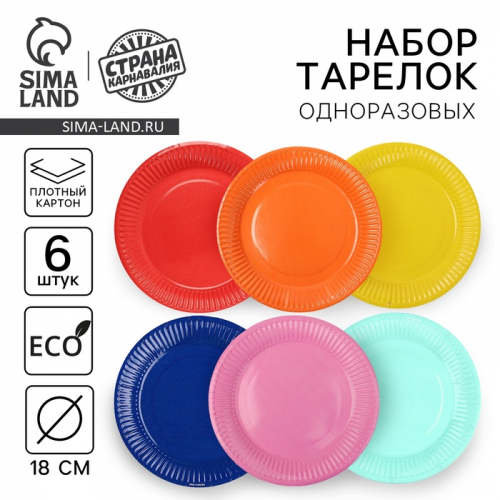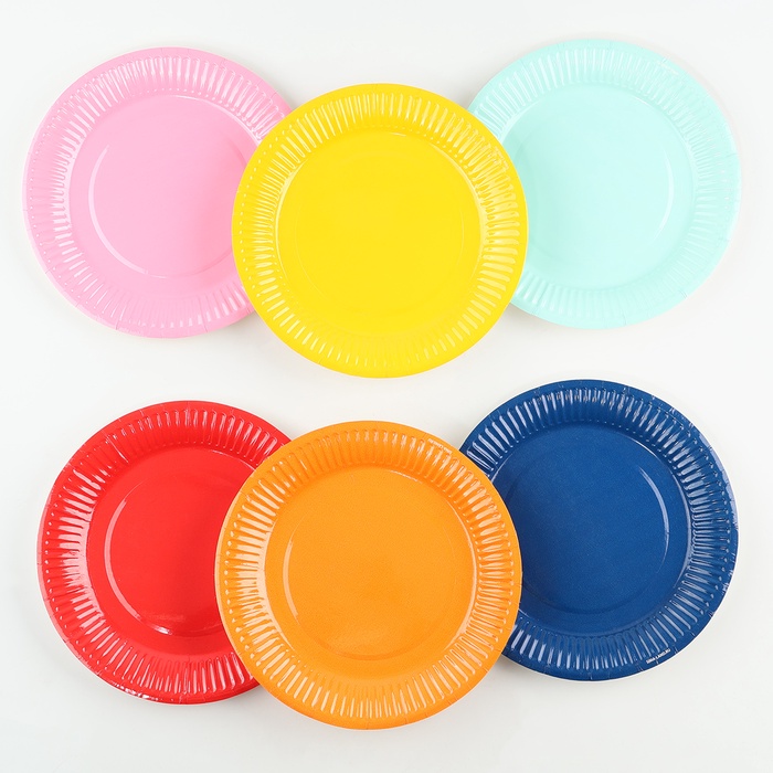 Тарелки одноразовые бумажные «Разноцвет», d — 18 см, набор 6 шт.