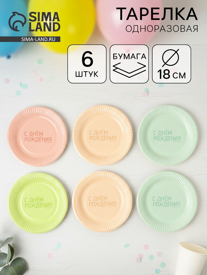 Тарелки одноразовые бумажные «С Днем рождения», 6 шт., МИКС