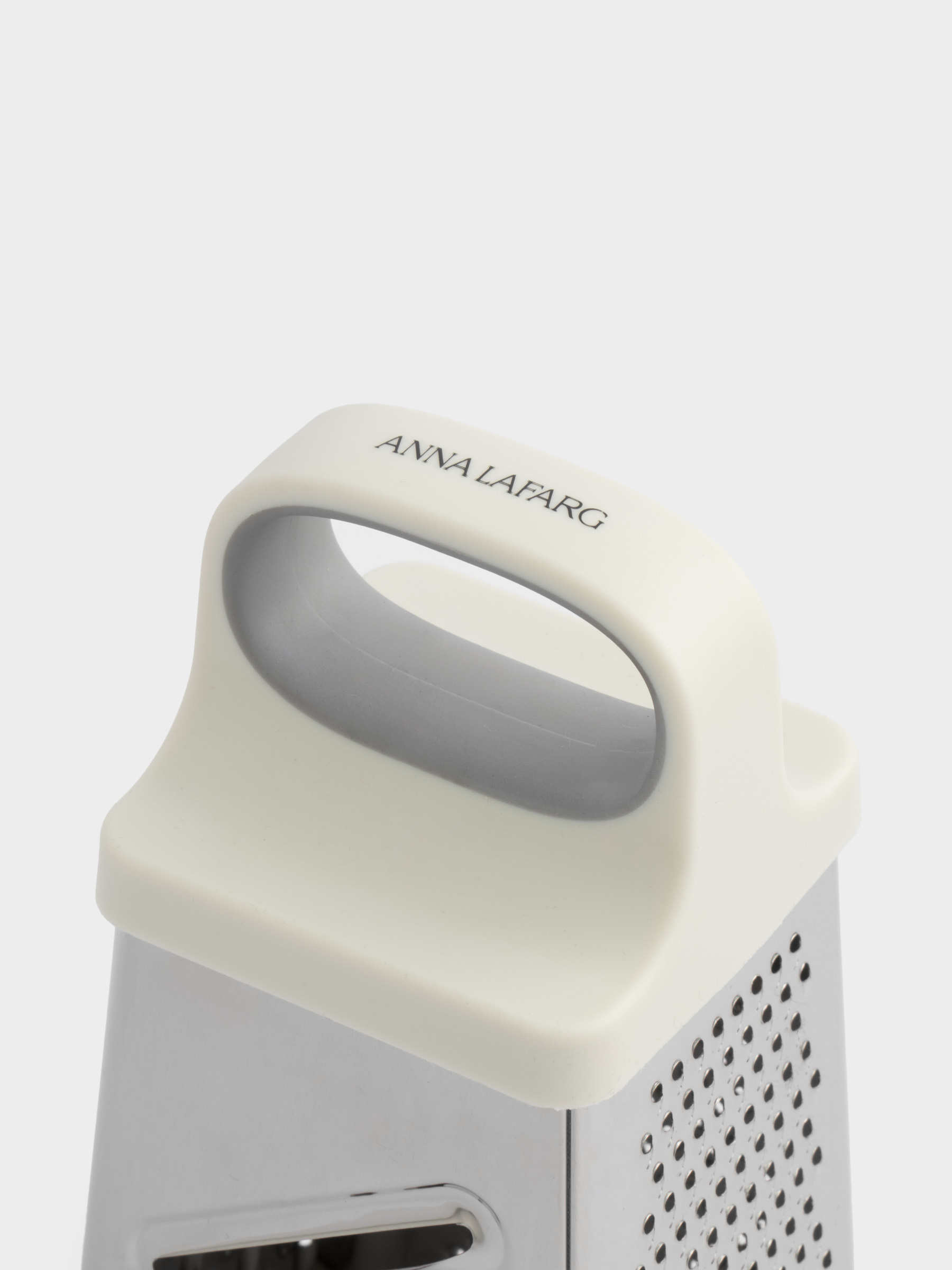 Терка, четырехгранная. Размер: 21х10х10 см. Материал: нержавеющая сталь, полипропилен, термопластичная резина. Предназначена для измельчения твёрдых и мягких продуктов: сыр, шоколад, овощи и фрукты и пр. Рекомендации по уходу: мыть вручную с применением мягких моющих средств. Не использовать для ухода абразивные чистящие средства и жесткие губки.