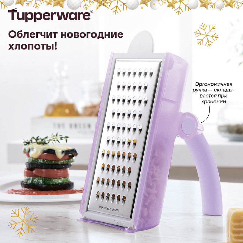 Тёрка с контейнером и складной ручкой предназначена для натирания сыра, яблок, картофеля, моркови, капусты, огурцов, кабачков и других продуктов.