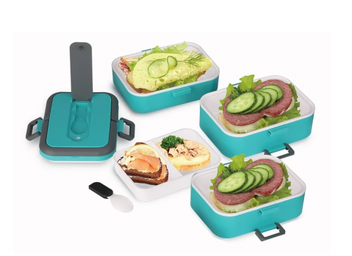 Размеры термоконтейнера 18,5*15,5*19 см. Состоит из 3 емкостей объемом 750 мл. каждая.Крышка с силиконовым уплотнителем, вакуумный клапан, водонепроницаемые боковые фиксаторы, внутри пластиковый контейнер для микроволновой печи, ложка - 1 шт.Цвет фиолетовый. Состав пластик.Рекомендована ручная чистка.