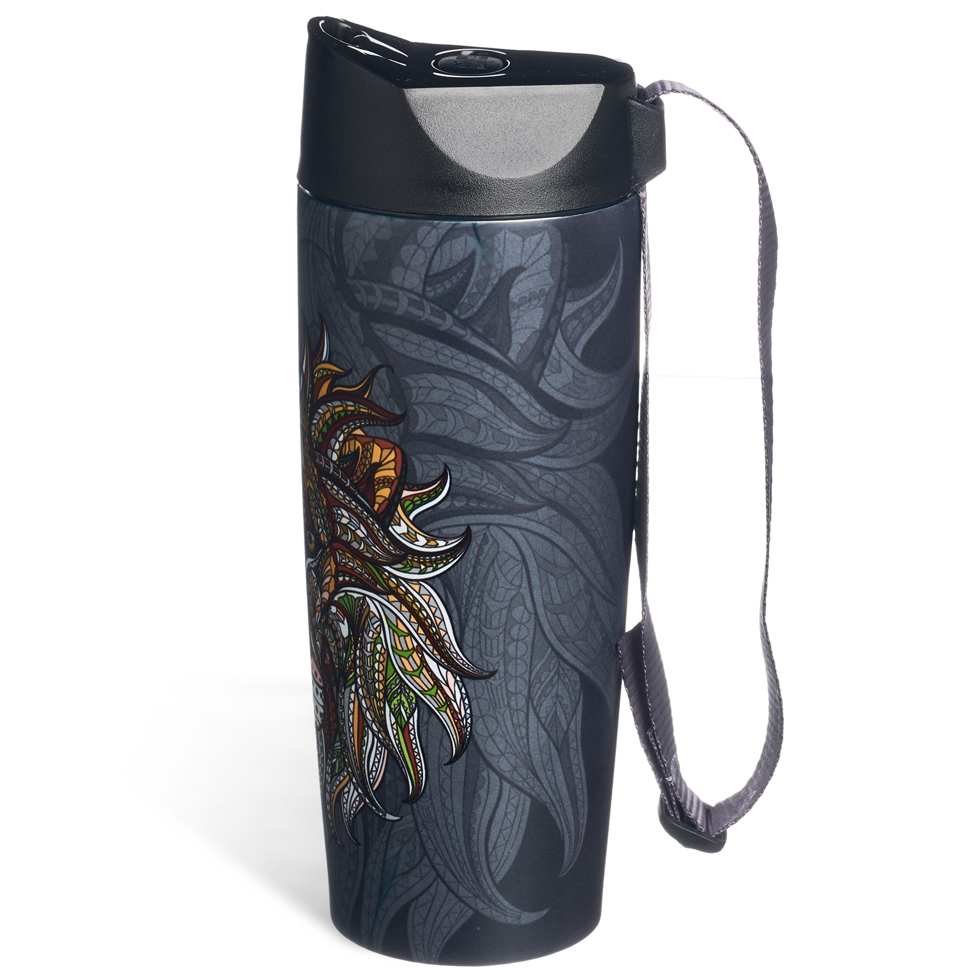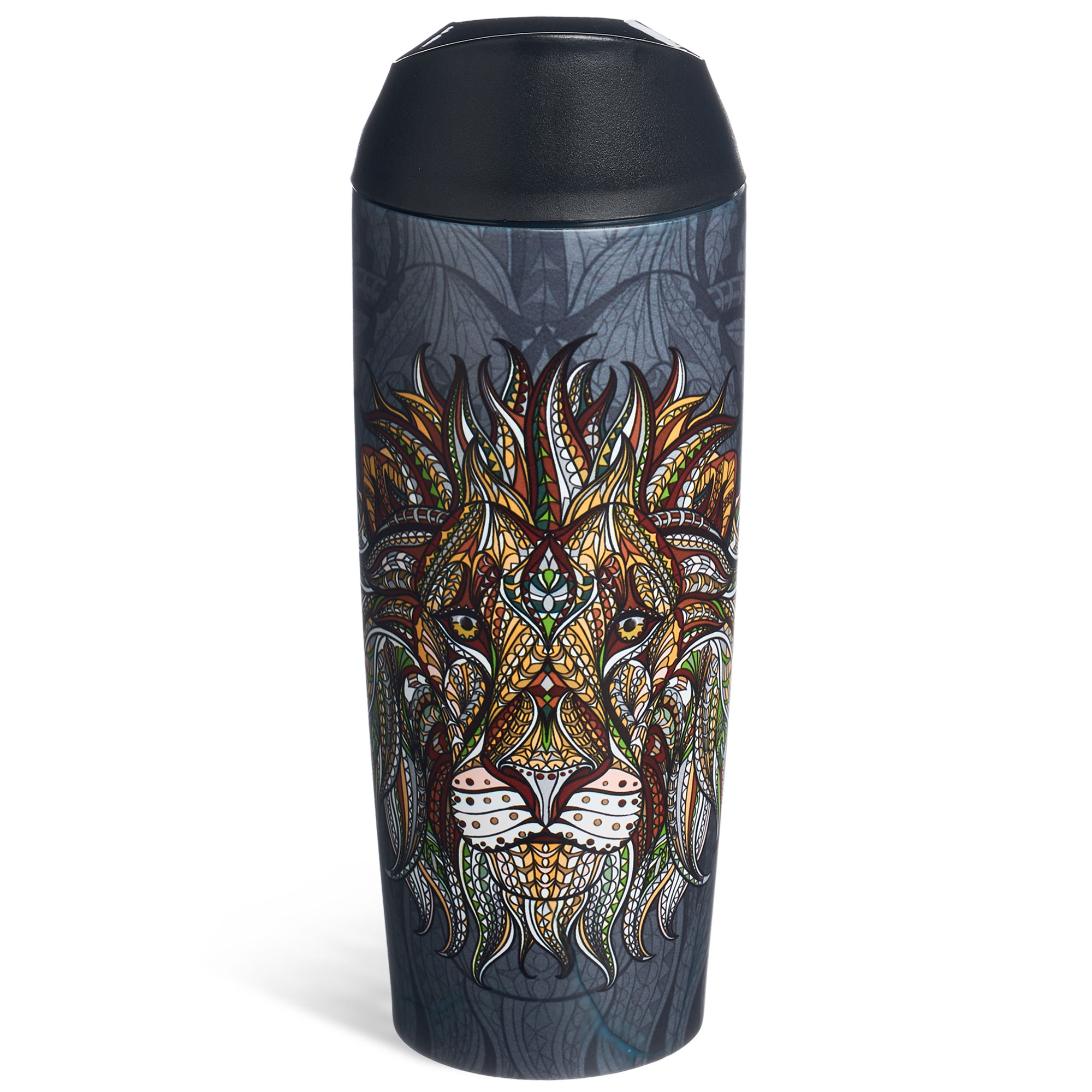 ТЕРМОКРУЖКА AGNESS "ЛЕВ" С КНОПКОЙ-СТОППЕРОМ, 360МЛ КОЛБА НЕРЖ.СТАЛЬ 18/10