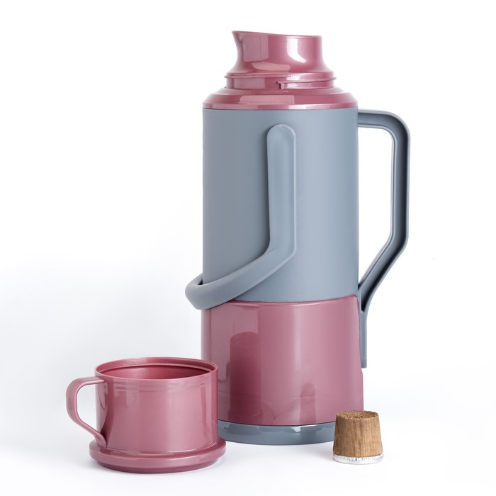 Термос, 1.2 л, со стеклянной колбой, сохраняет тепло 24 ч, пластик, МИКС
