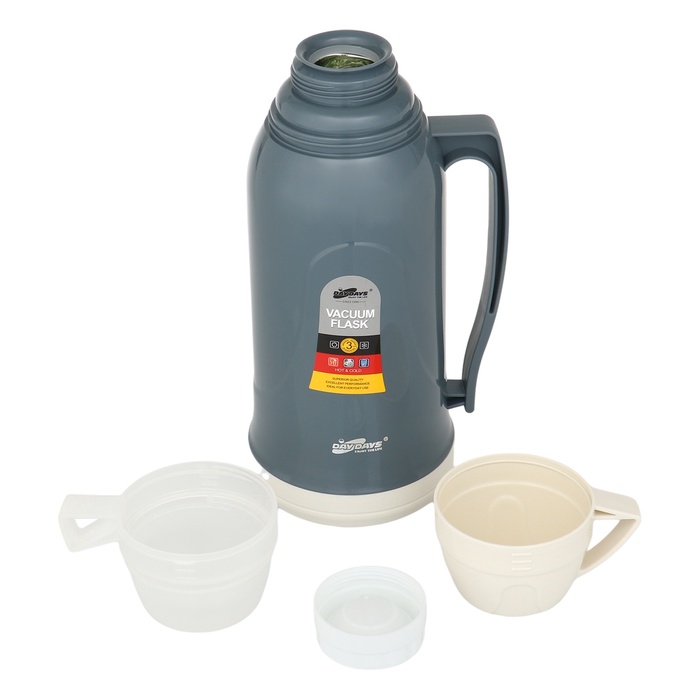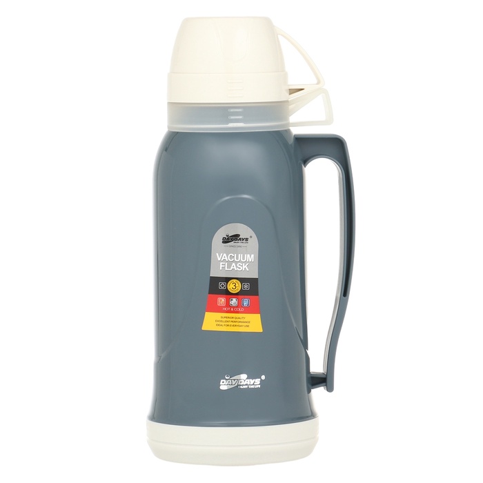Комфортное хранение напитков в компактном формате. Термос на 1,7 л в сером оттенке со стеклянной колбой сочетает практичность и удобство для повседневного использования.