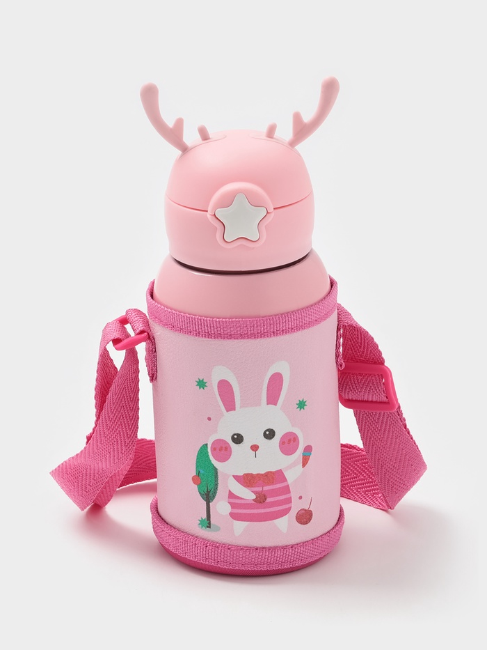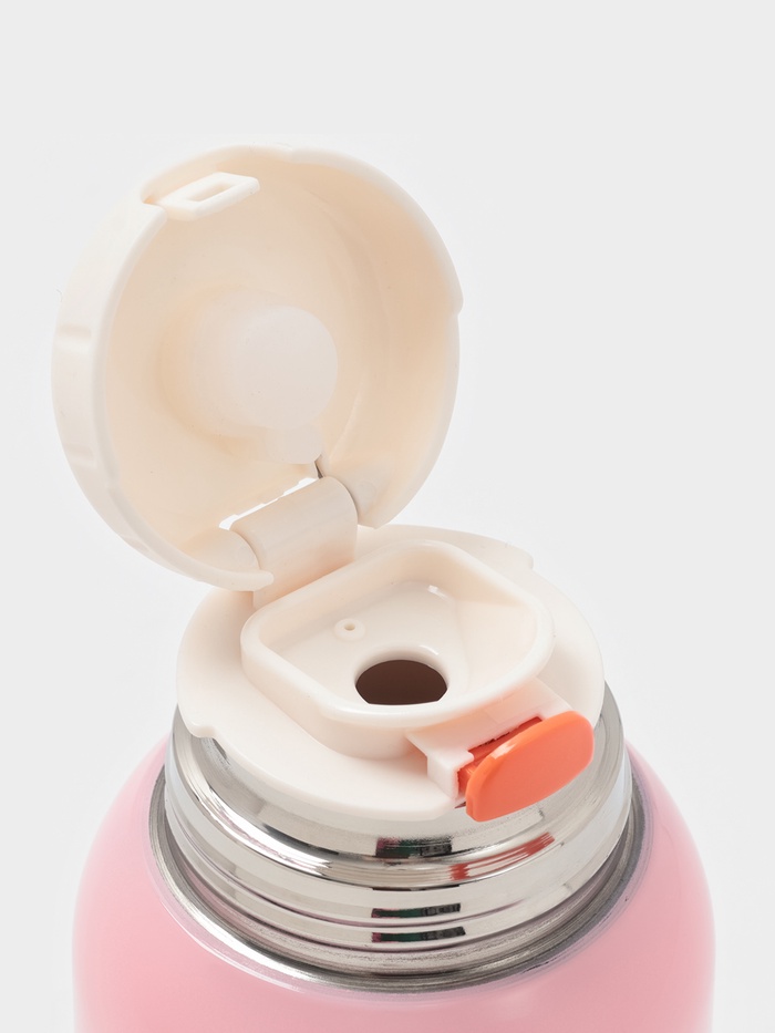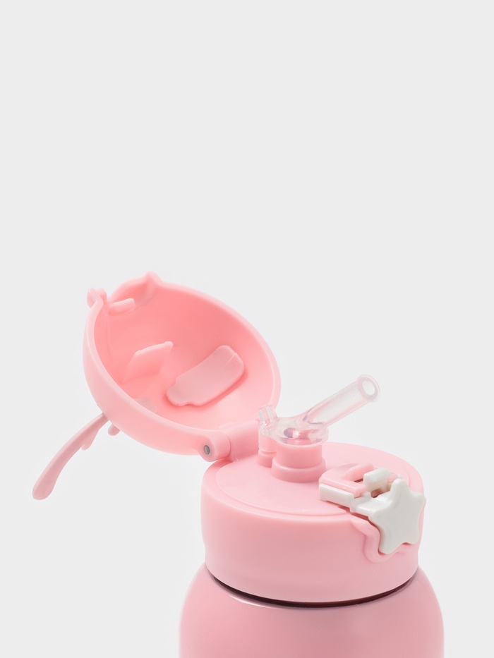 Розовый корпус с единорогом, два типа крышек и удобные аксессуары делают его надёжным спутником в саду, на прогулке или в поездке.