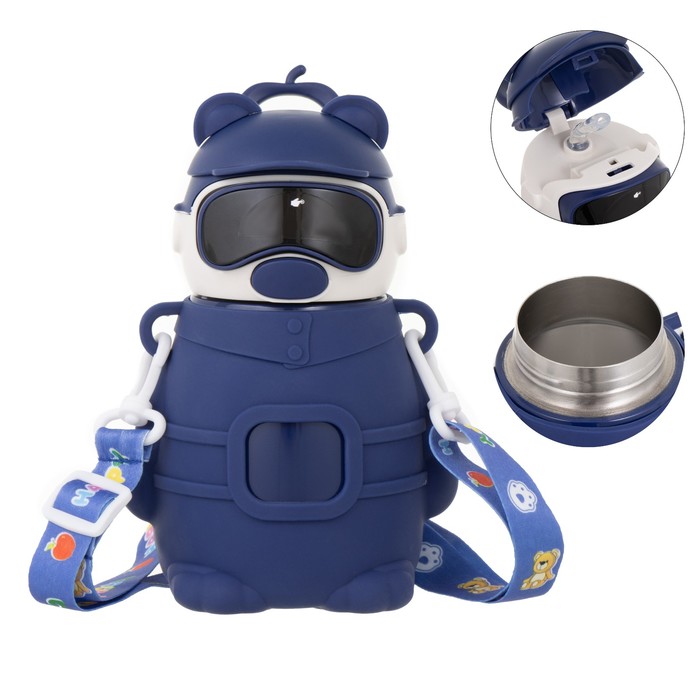 Термос детский «Панда», 480 мл, сохраняет тепло до 12 ч, нержавеющая сталь, синий
