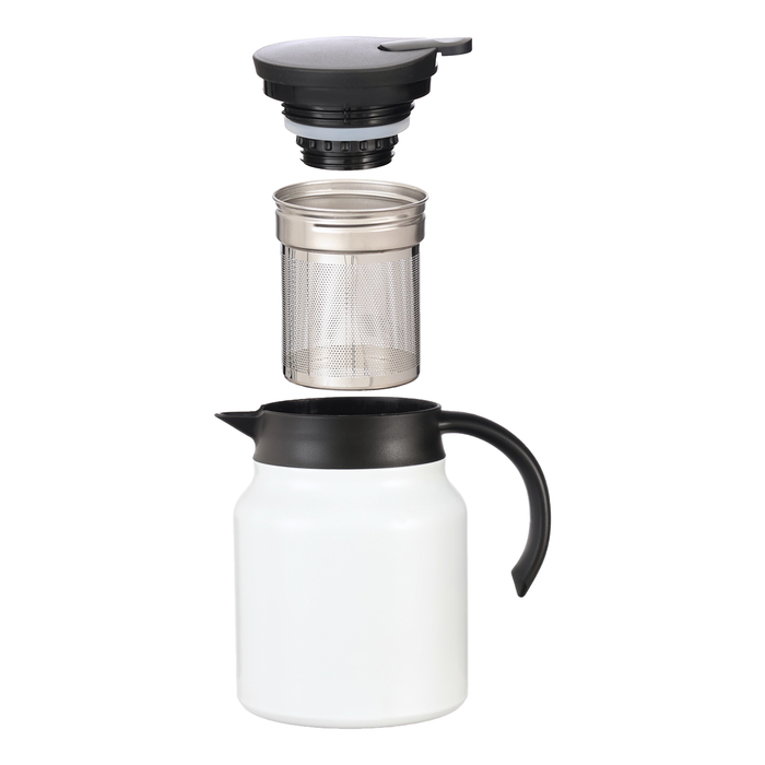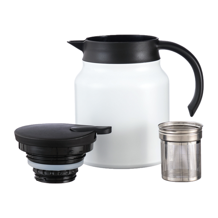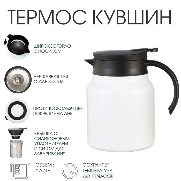 Термос - кувшин, 1 л, с ситечком, сохраняет тепло до 12 ч, нержавеющая сталь, белый