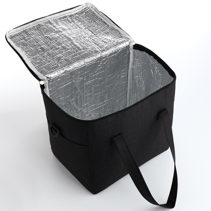 Термосумка на молнии, объём 10 л, наружный карман, чёрная
