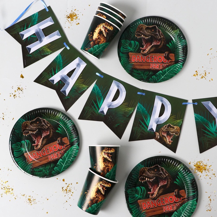 УЦЕНКА Набор бумажной посуды «Dangerous party», 6 тарелок, 6 стаканов, 1 гирлянда