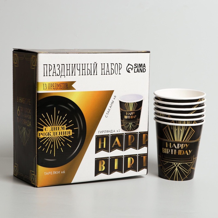 УЦЕНКА Набор бумажной посуды «Happy party», 6 тарелок, 6 стаканов, 1 гирлянда