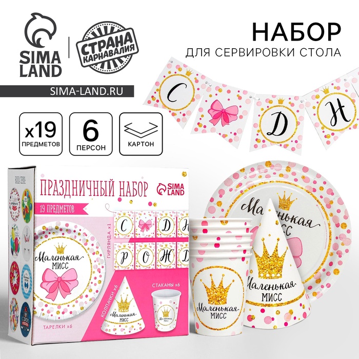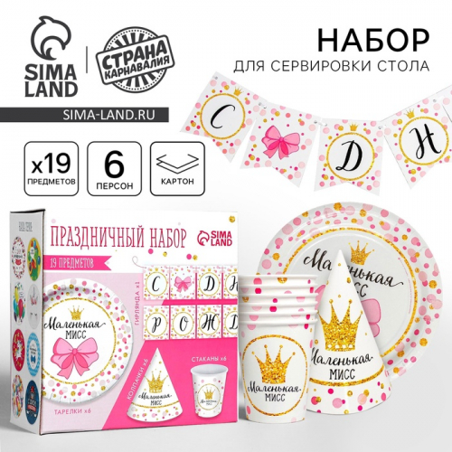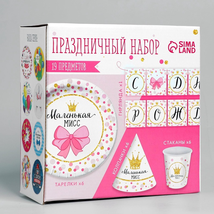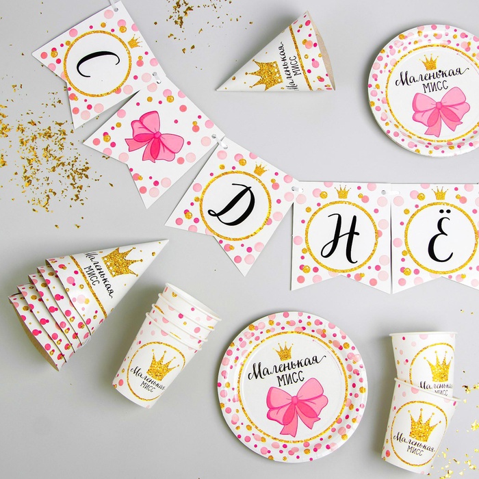 УЦЕНКА Набор бумажной посуды «С днём рождения Маленькая мисс», 6 стак., 6 колп., 1 гирл.