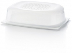 Умная сырница малая Краткая информация Умное решение для длительного хранения продуктов! Преимущества «Умная сырница с интегрированной решеткой – это инновационное изделие, сводящее проблему появления конденсата и постороннего запаха к минимуму, во время хранения сыра в холодильнике. В этой сырнице используется новый, совершенствованный вид мембран «Системы контроля конденсата ™». Характеристики новой мембраны «Системы контроля конденсата ™»: Нейтральна к еде, можно мыть в посудомоечной машине NEW Устойчива к проникновению прямых солнечных лучей   NEW Возможность переработки – защита окружающей среды Оптимальная степень прозрачности NEW Благодаря Системе контроля конденсата™ внутри сырницы создается уникальный микроклимат. Когда в Умной Сырнице образуется влага, мембрана, покрывающая решетку, поглощает влагу и выводит ее наружу. Система контроля конденсата™ создает уникальную среду внутри изделия для любого вида сыра. Размер решётки оптимален для хранения сыра. Поднос сырницы можно использовать с обеих сторон. Благодаря стороне с углублением, Вы сможете хранить в сырнице большие куски сыра. Для хранения и сервировки сыра. Сырница обеспечивает аппетитный вид и свежесть ещё дольше. Идеальный размер для хранения такого сыра как камамбер или нескольких других меньших по размеру кусков сыра.   Сырница идеальна для того, чтобы сохранить моцареллу свежей, в собственном соку в подносе. Вы мы можете хранить несколько видов сыра одновременно в одной сырнице, а также хранить и сервировать масло. Техническая информация Важно: всегда следуйте инструкции по хранению на упаковке продукта. Для хранения в холодильнике. Можно мыть в посудомоечной машине. Нельзя использовать в микроволновой печи, морозильной камере, в духовом шкафу. Не предназначено для транспортировки в перевернутом положении.
