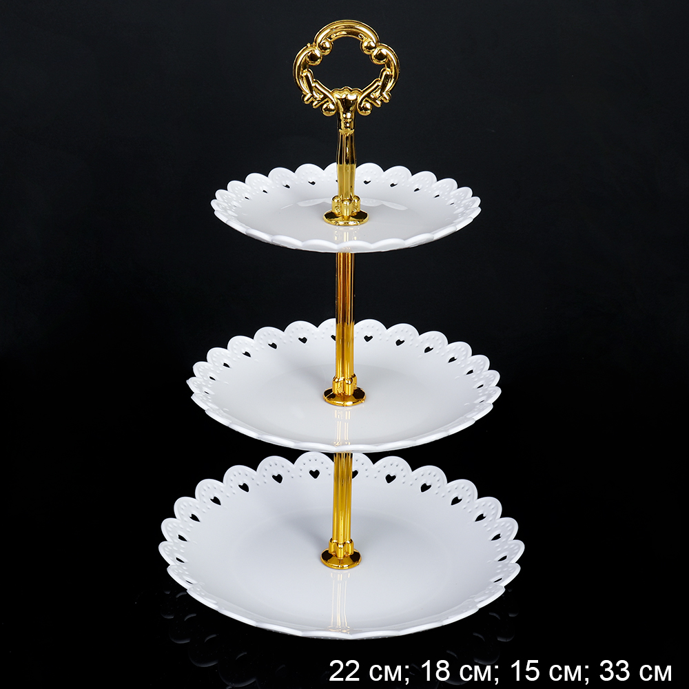 Ваза для фруктов 3-х ярусная 15/18/22 Круг белая / D-1245 /уп 100/ Пластик