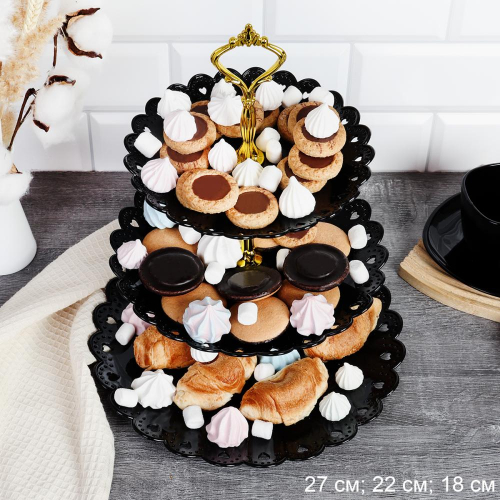 Ваза для фруктов 3-х ярусная 15/18/22 Круг черная / D-1258 /уп 100 / Пластик