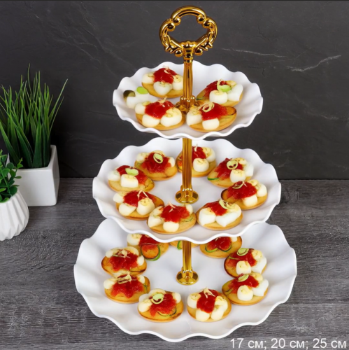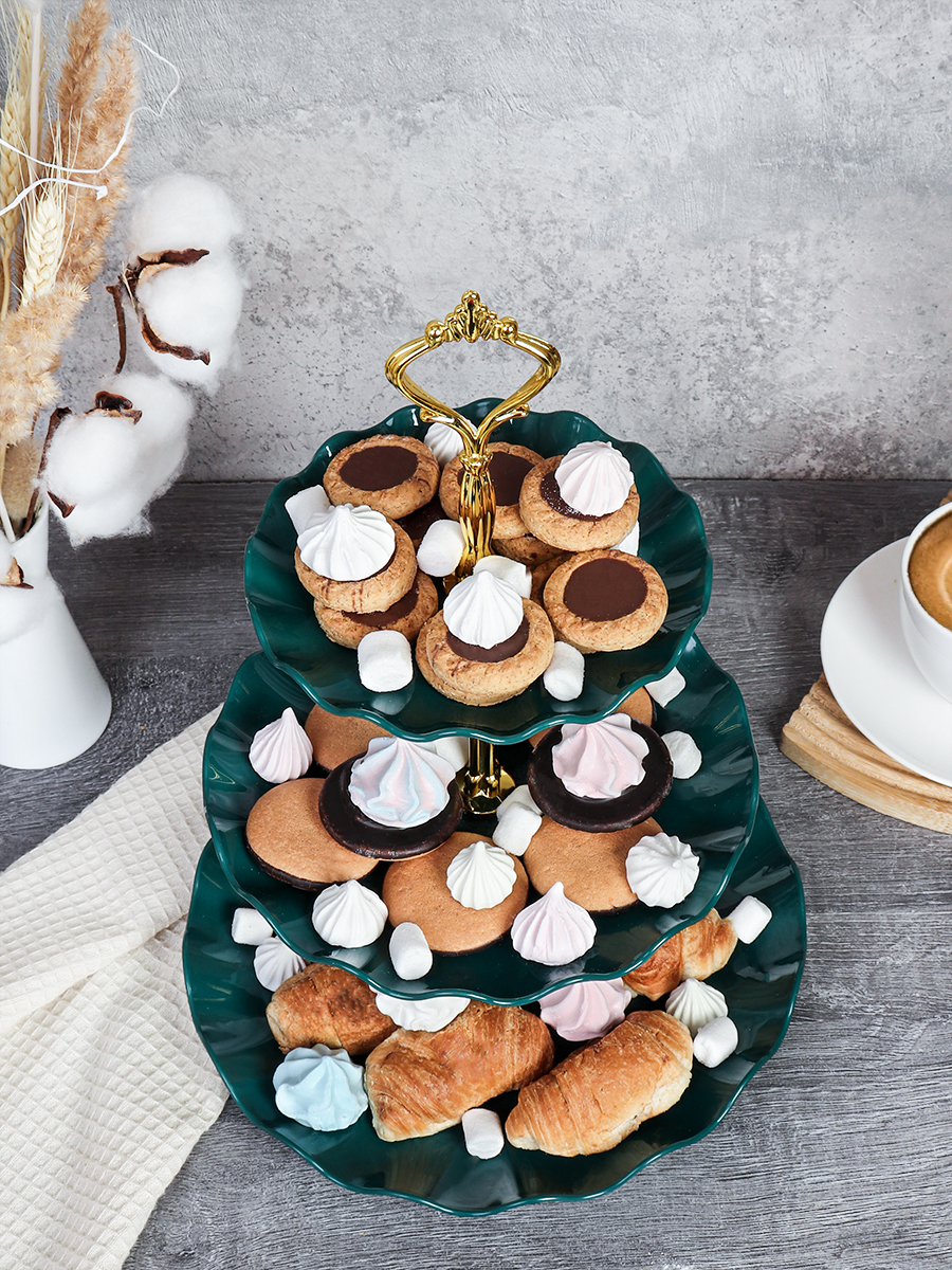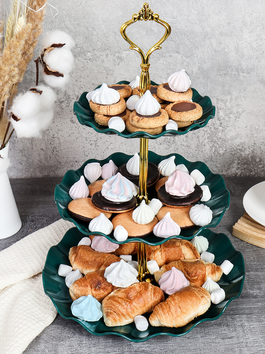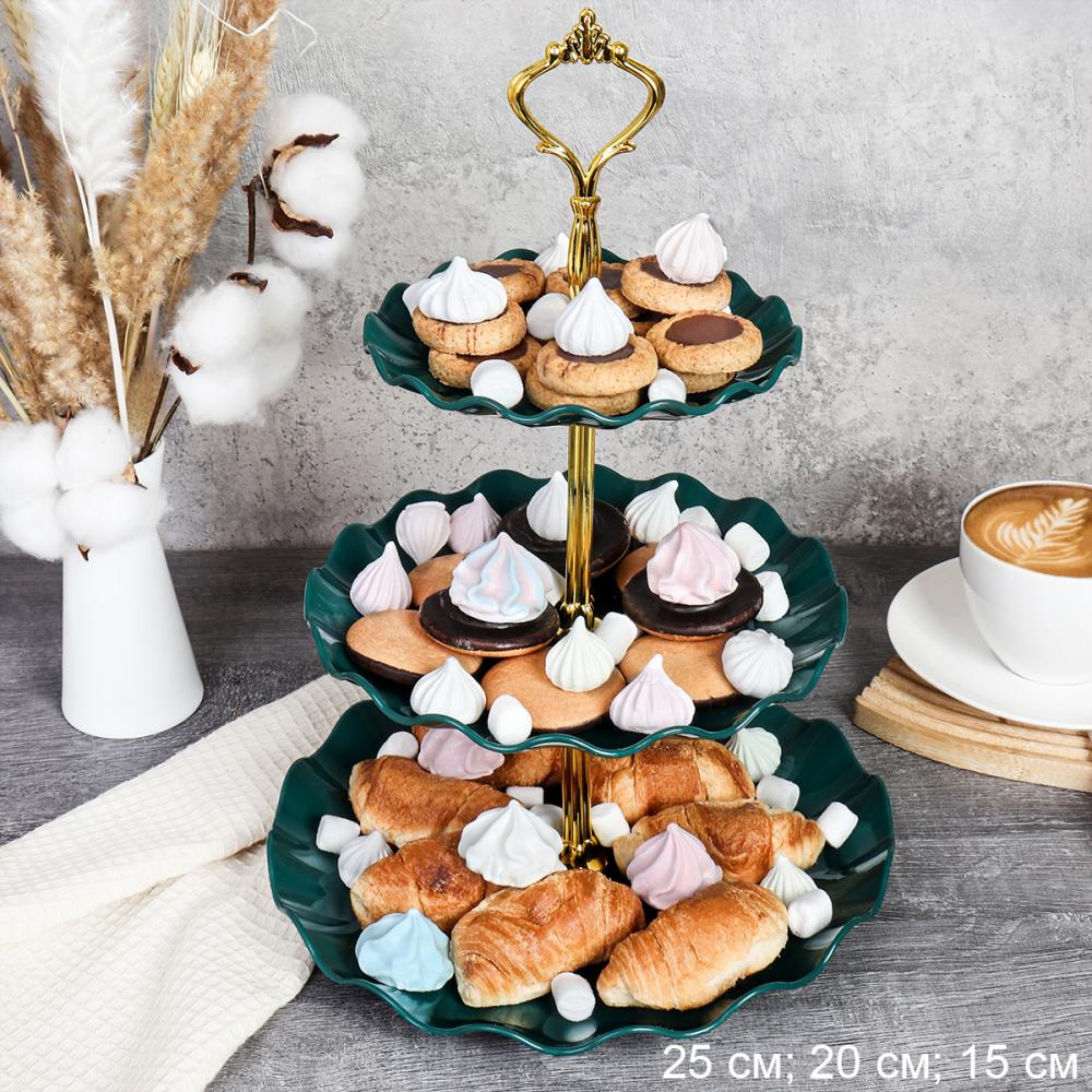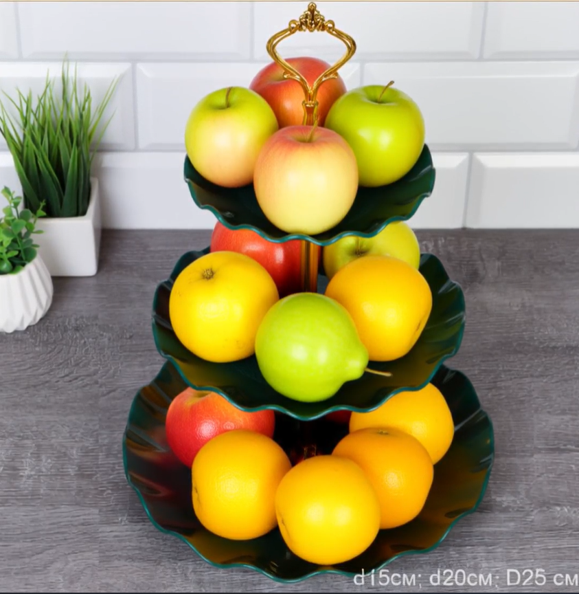 Ваза для фруктов 3-х ярусная 15/20/25 Круг Волна зеленая / D-1267 /уп 80/ Пластик