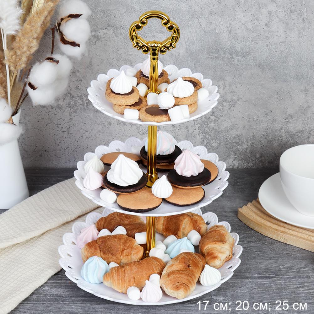 Ваза для канапе 3-х ярусная 15/18/22 Круг белая / D-1244 /уп 100/ Пластик/689062