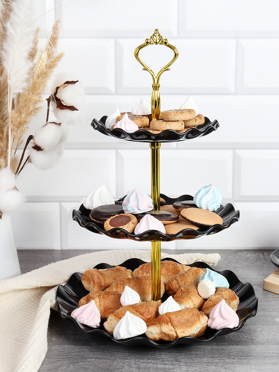 Ваза для канапе 3-х ярусная 15/20/25 Круг Волна черная / KB22 /уп 80/ Пластик/739562
